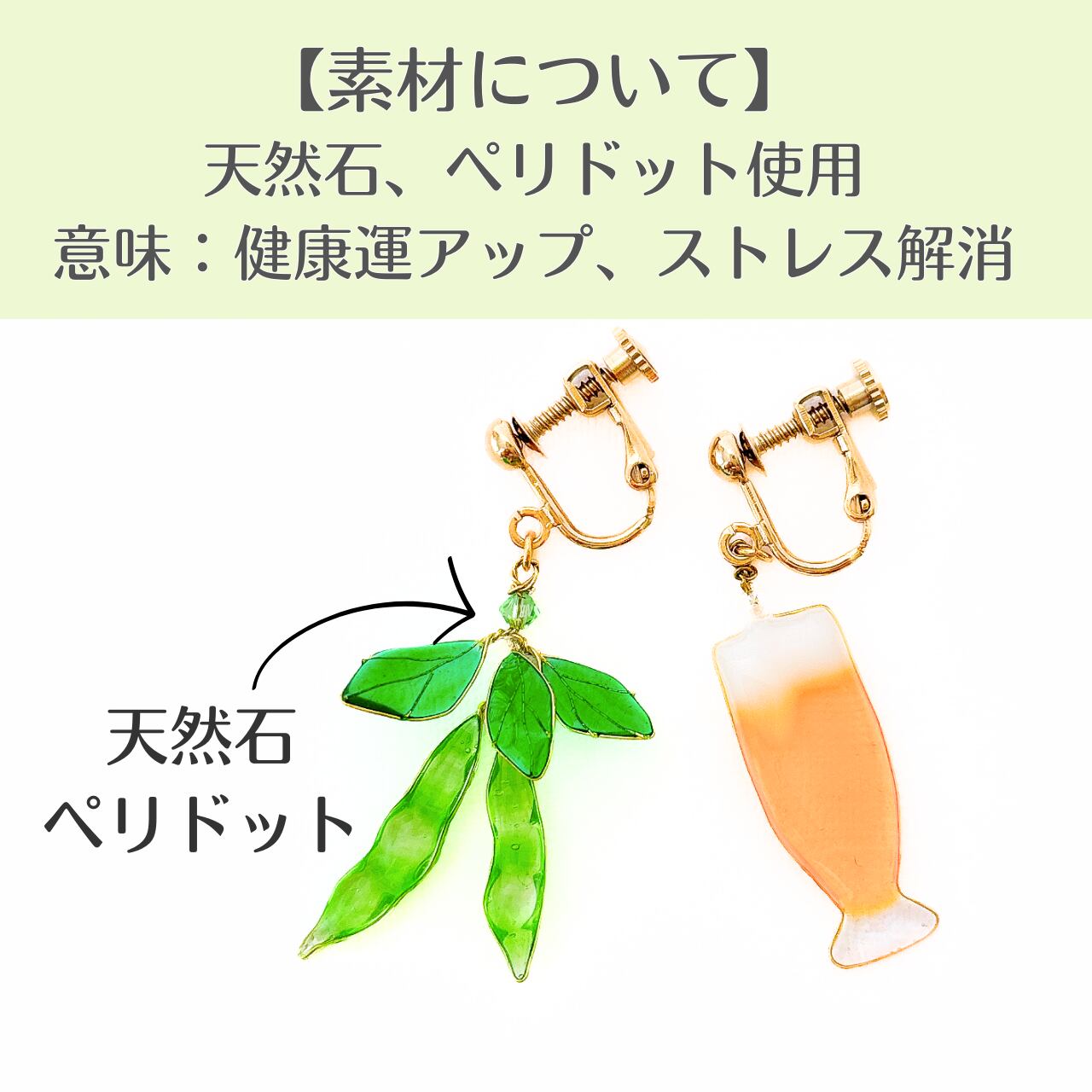 ワイヤー、レジン、天然石(ペリドットと水晶)、アクセサリー金具。